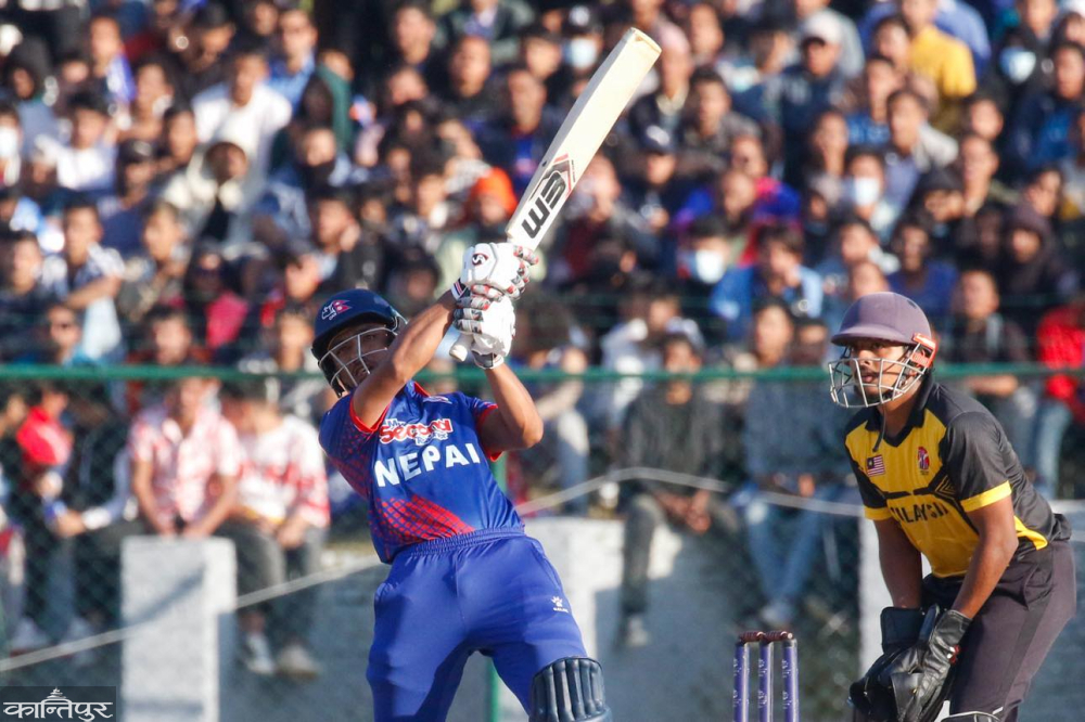 काठमाडौँ — सानदार ब्याटिङ गरेपछि नेपाल ट्वान्टी-२० विश्वकप छनोट एसिया क्षेत्रको सेमिफाइनलमा प्रवेश गरेको छ । नेपालले मंगलबार मलेसियालाई ६ विकेटले पराजित गरेको हो ।कुशल भुर्तेलले २५ बलमा ४३, आसिफ शेखले २३ बलमा ३५ र कुशल मल्लले ३४ बलमा ६५ रन बनाएपछि नेपालले १ सय ६६ रनको लक्ष्य १८ ओभरमा पूरा गरेको थियो । नेपालको यो लगातार दोस्रो विजय हो । अघिल्लो खेलमा नेपालले सिंगापुरलाई ८ विकेटले पराजित गरेको थियो ।मलेसियामाथि नेपालको विजयसँगैं ओमान पनि समूह ‘ए’ बाट सेमिफाइनल पुगेको छ । ओमानले पहिलो दुई खेलमा मलेसिया र सिंगापुरलाई पराजित गरेको थियो । नेपाल र ओमान बिहीबार समूहचरणको अन्तिम खेलमा प्रतिस्पर्धा गर्नेछन् । मलेसिया र सिंगापुर दुवै समूहचरणको एक खेलअगावै नकआउट दौडबाट बाहिरिएका छन् ।भुर्तेल र आसिफले ५ ओभरमा ४९ रन जोडी नेपाललाई सानदार सुरुवात दिलाएका थिए । भुर्तेल समान ४ चौका र छक्का प्रहार गरि आउट भए । आसिफ र मल्लले १० ओभरमा नेपालको स्कोरलाई ९५ रनसम्म पुर्याए । मोहम्मद अमिरको बलमा कट एन्ड बोल्ड हुनु पूर्व आसिफले १ चौका र २ छक्का प्रहार गरे ।ट्वान्टी-२० अन्तर्राष्ट्रियका विश्व कीर्तिमानधारी मल्लको यो तेस्रो अर्धशतक हो । उनी पनि कट एन्ड बोल्ड भए र खेलमा अमिरको तेस्रो सिकार भए । उनले कुल २ चौका र ७ छक्का प्रहार गरे । सन्दीप जोरा १८ र विवेक यादव २ रनमा अविजित रहे ।यसअघि टस जितेको मलेसियाले त्रिवि क्रिकेट मैदान कीर्तिपुरमा निर्धारित २० ओभर खेली ९ विकेट गुमाई १ सय रन ६५ बनाएको थियो ।ओपनर सैयद अजिजले मलेसियाबाट सर्वाधिक ६८ रन बनाए । गुल्शन झाको बलमा आउट हुनुअघि उनले ८ चौका र २ छक्का प्रहार गरे । अजिजले जुबाइदी जुलकिफ्लेसँग मिलेर मलेसियालाई उत्कृष्ट सुरुआत दिलाएका थिए । उनीहरूले पावर प्लेमा ५८ रन जोडेका थिए ।छैटौं ओभरको पाँचौं बलमा अविनाश बोहराले जुलकिफ्लेलाई आउट गरी नेपाललाई पहिलो सफलता दिलाएका थिए । त्यसपछि मलेसियाको नियमित विकेट झरिरह्यो । कप्तान अहमद फैज ३ रनमा रनआउट भए । वीरनदीप सिंहलाई सन्दीप लामिछानेले ४ रनमा एलबीडब्लू आउट गरे ।कामचलाउ बलर कप्तान रोहित पौडेलले सार्विन मुनिएन्डीलाई १३ रनमा कट एन्ड बोल्ड गरे । अविनाशले मोहम्मद अमिरलाई ८ रनमा बोल्ड गरे । अविनाशले नेपालबाट ४ विकेट लिए । अघिल्लो दिन सिंगापुरविरुद्ध पनि ३ विकेट लिएका अविनाशले ४ ओभरमा २७ रन खर्चेका थिए ।