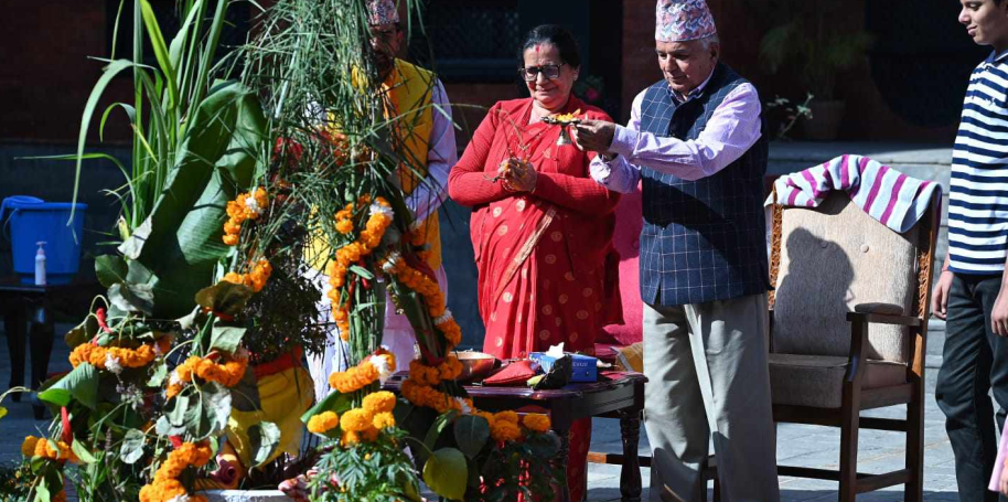 राष्ट्रपति पौडेलद्वारा तुलसीको विशेष पूजा